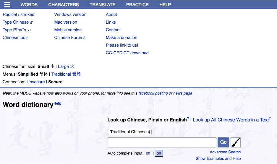 MDBG has been around for a while, it is almost the staple online dictionary for Chinese language students. I started using it back when I first started taking Chinese in college, and have been using it ever since. Whether I am working on a translation, need a quick lookup, or just want to double check the Simplified/Traditional variant of a specific character, I find MDBG to be my go-to online dictionary.
